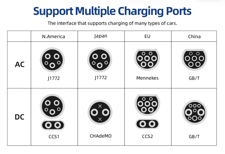 * Global Standards Compliance: Compliant with globally recognized standards like CE, FCC, RoHS, and ISO ,supporting conductive charging for electric vehicles with diverse plug configurations.