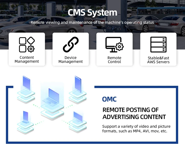 * Innovative 32-65 Inch Screen: This electric vehicle charging station stands out with its impressive 75-inch screen, offering a sizable and interactive interface for seamless user interaction and information display.